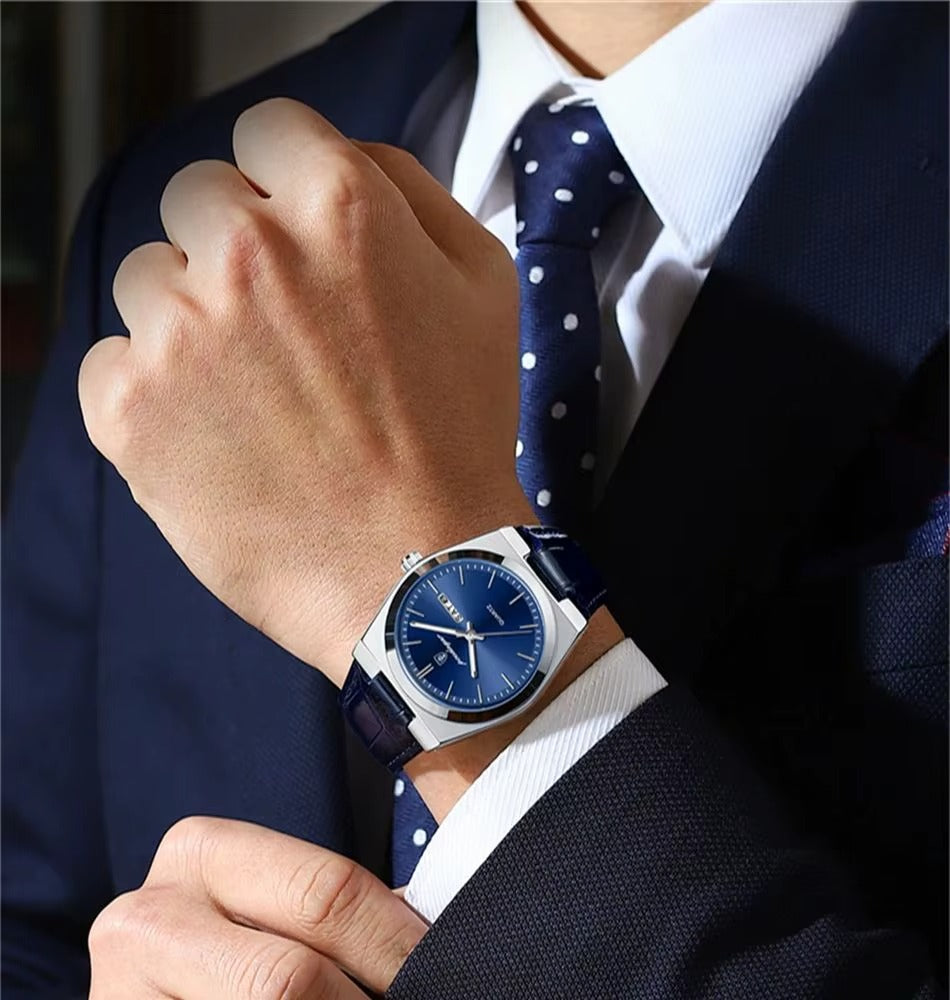 La montre PEODAGAR™ est conçue pour l’homme moderne qui recherche à la fois style et distinction. Son cadran bleu profond associé à un design épuré apporte une touche de raffinement qui sublime toute tenue masculine. Portée au poignet, elle inspire confiance, élégance et respect en toute circonstance.