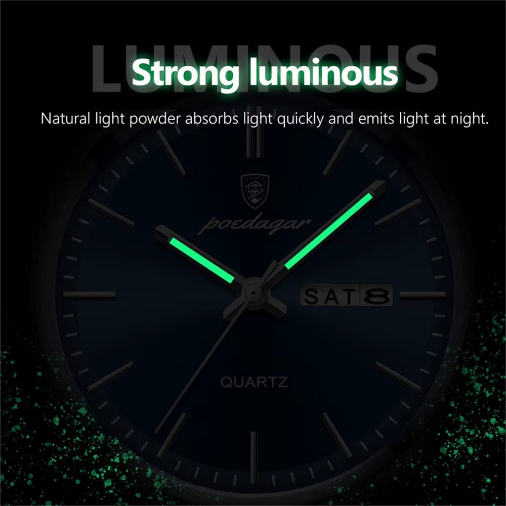Les aiguilles et les marqueurs brillent dans l'obscurité, permettant une lecture facile de l'heure même la nuit ou dans des environnements peu éclairés.